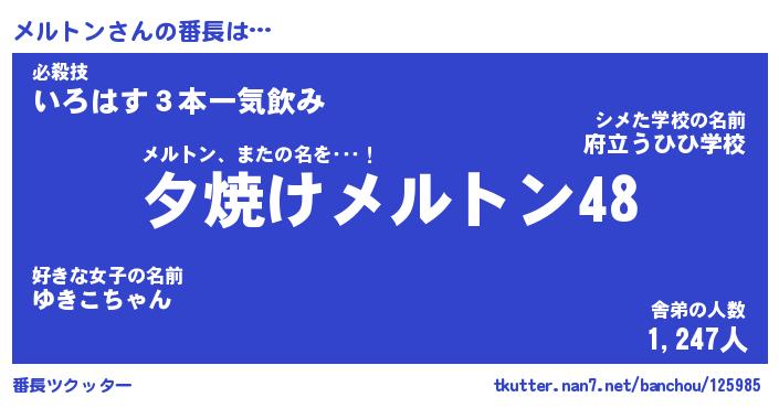 | 意味不明あだ名 | 『ペロリンメルトン』『永久保存メルトン』 |