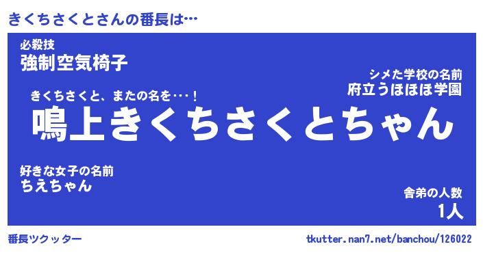 | 2回繰り返すあだ名 | 『きくきく』『ききくく』『あんあん』 |