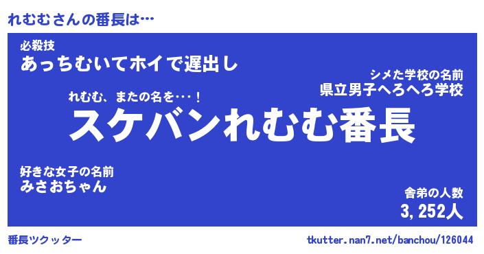 | 2回繰り返すあだ名 | 『れむれむ』『れれむむ』『ぬめぬめ』 |