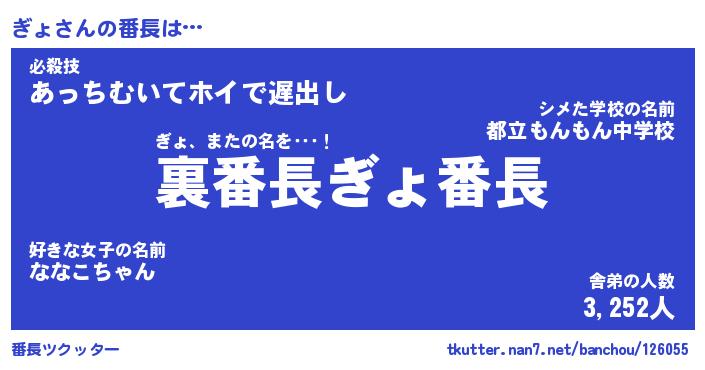 | ピコ太郎風あだ名 | 『ギコ三郎』『ピギ六郎』『ギョ八郎』 |