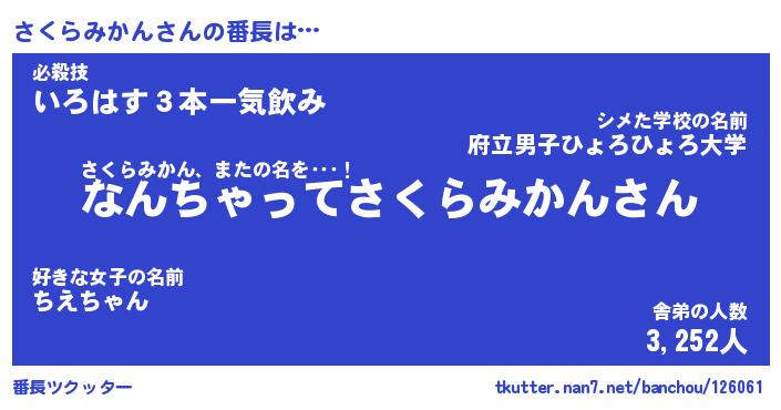 | 肩書あだ名 | 『さくらみかんCEO』『さくらみかん班長』 |