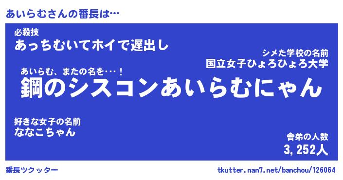 | 欧米人風あだ名 | 『マイケルあいらむ』『ウサインあいらむ』 |