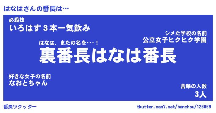 | ヘコむあだ名 | 『はなにゅー』『なまこ酢』『はなお』 |