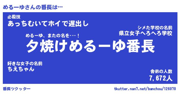 | 意味不明あだ名 | 『ペロリンめるーゆ』『永久保存めるーゆ』 |