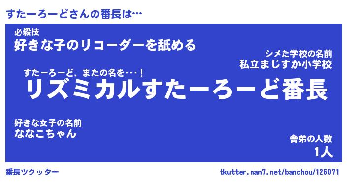 | ピコ太郎風あだ名 | 『スコ一郎』『ピス史郎』『スタ四郎』 |