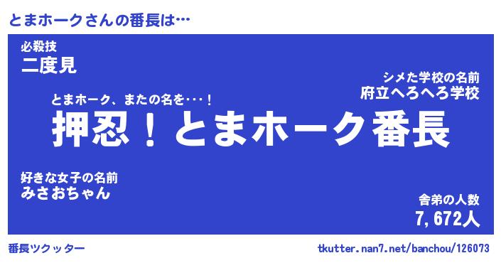| ヘコむあだ名 | 『とまにー』『酢こんぶ』 |