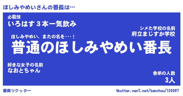 | ヒーロー風カッコイイあだ名 | 『スーパーホシミヤメイ』『魔戒騎士ホシ』 |