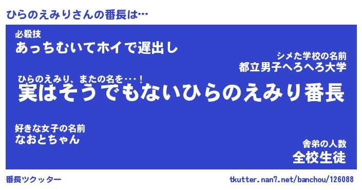 | 肩書あだ名 | 『ひらのえみり御曹司』 |