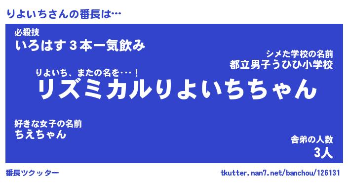 | 意味不明あだ名 | 『ペロリンりよいち』『永久保存りよいち』 |