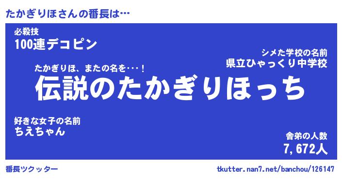 | 伝説のあだ名 | 『伝説のスナイパーたかぎりほ』 |