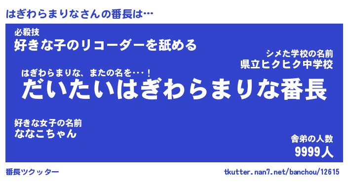 | ヒーロー風カッコイイあだ名 | 『スーパーハギワラマリナ』 |