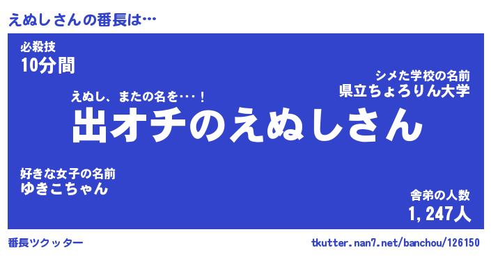 | 伝説のあだ名 | 『伝説のスナイパーえぬし』 |