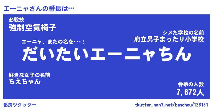| 2回繰り返すあだ名 | 『エーエー』『エエーー』『ぬらぬら』 |