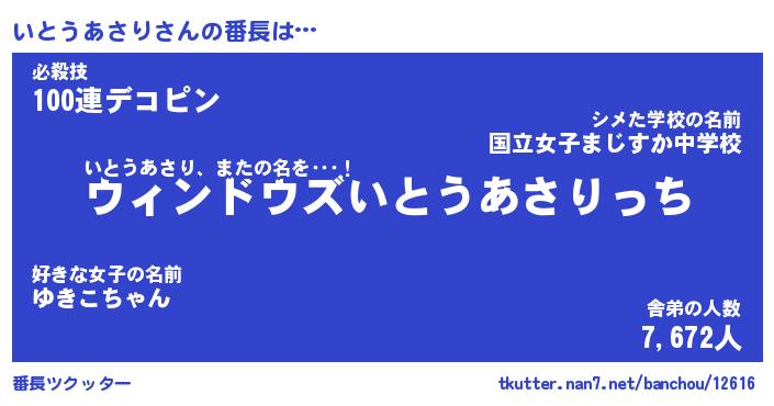 | ピコ太郎風あだ名 | 『イコ一郎』『ピイ次郎』『イト十郎』 |