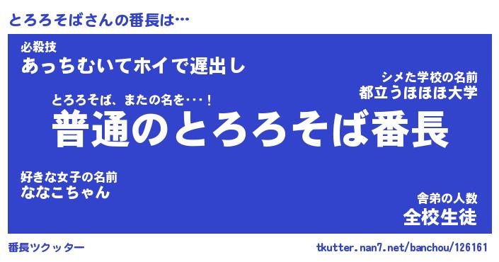 | ヒーロー風カッコイイあだ名 | 『スーパートロロソバ』『暗黒騎士トロ』 |