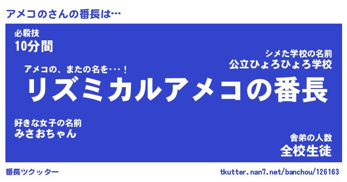 | 意味不明あだ名 | 『ペロリンアメコの』『永久保存アメコの』 |