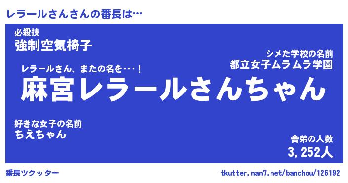 | ヒーロー風カッコイイあだ名 | 『スーパーレラールサン』『幻影騎士レラ』 |