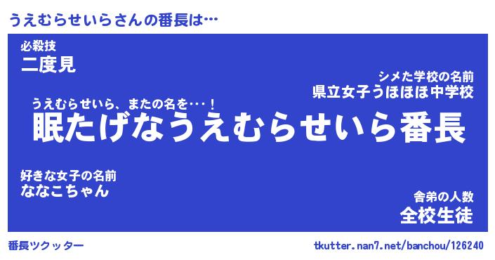 | ポケモン風あだ名 | 『ウエチュウ』『ウエムダネ』 |