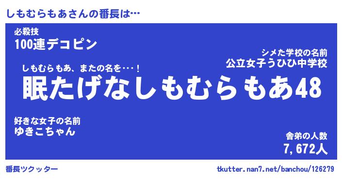 | 伝説のあだ名 | 『封印されしスナイパーしもむらもあ』 |