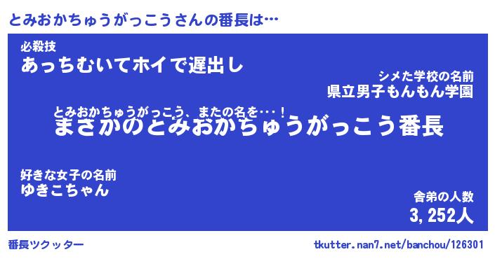 | ヒーロー風カッコイイあだ名 | 『スーパートミオカチュウガッコウ』 |