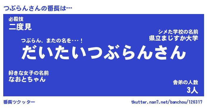 | ファンタジー風あだ名 | 『ツブフェル』『エターナルツブランー』 |
