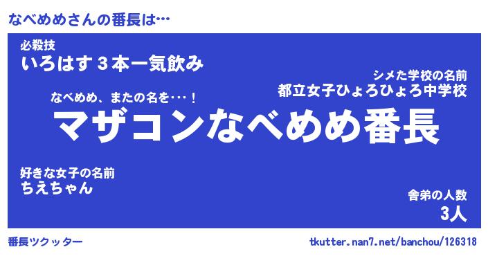 | 肩書あだ名 | 『なべめめ御曹司』『なべめめ国家主席』 |