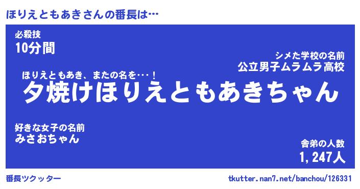 | 伝説のあだ名 | 『封印されしスナイパーほりえともあき』 |