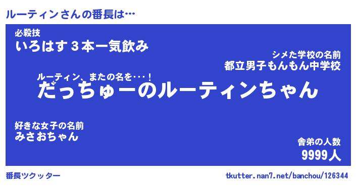 | ファンタジー風あだ名 | 『ルーフェル』『エターナルルーティンー』 |