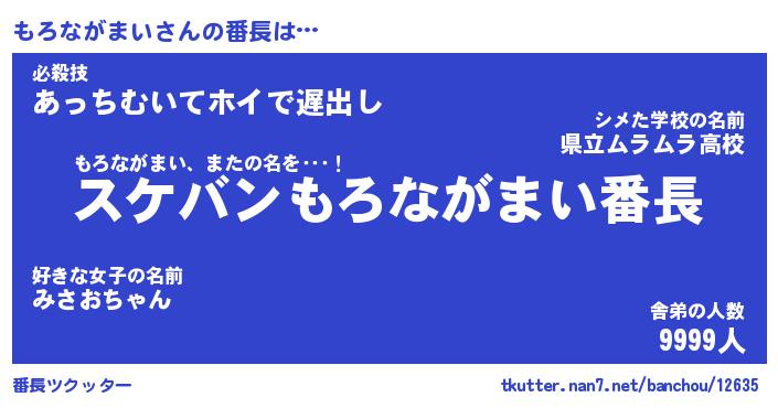 | ヒーロー風カッコイイあだ名 | 『スーパーモロナガマイ』『天弓騎士モロ』 |