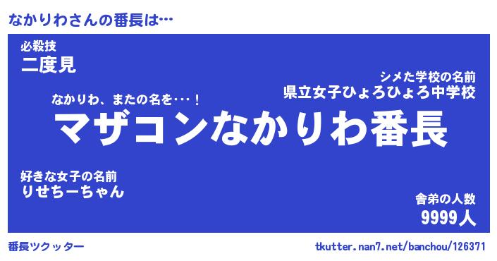 | 伝説のあだ名 | 『封印されしスナイパーなかりわ』 |