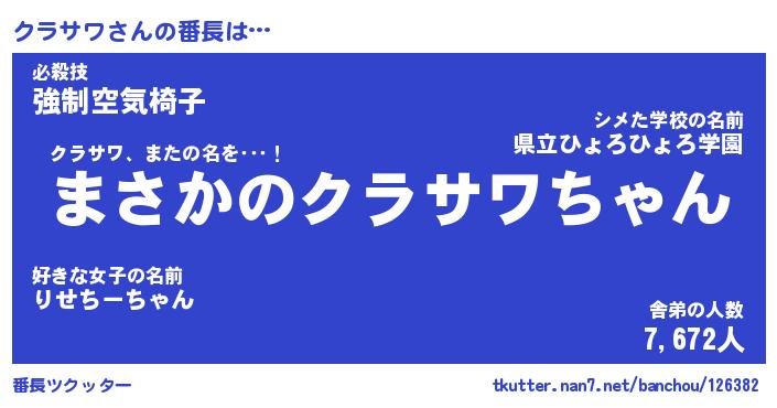 | ヒーロー風カッコイイあだ名 | 『スーパークラサワ』『炎刃騎士クラ』 |