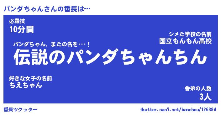 | 意味不明あだ名 | 『ペロリンパンダちゃん』 |