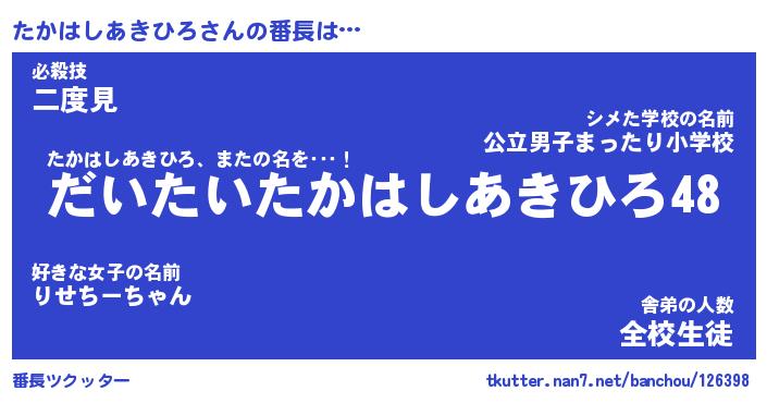 | 肩書あだ名 | 『たかはしあきひろ店長』 |