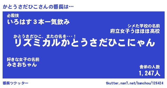 | ヘコむあだ名 | 『かともー』『なまこ酢』『かと太郎』 |