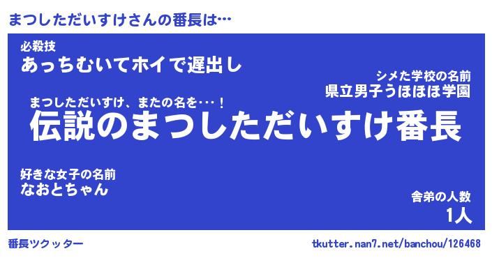 | 伝説のあだ名 | 『伝説のスナイパーまつしただいすけ』 |