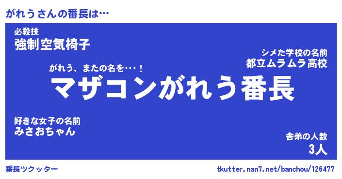 | 肩書あだ名 | 『がれう社長』『がれう国家主席』 |