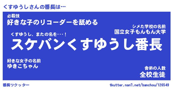 | 伝説のあだ名 | 『不死鳥のスナイパーくすゆうし』 |