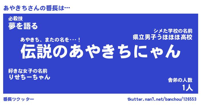 | ファンタジー風あだ名 | 『アヤフェル』『エターナルアヤキチー』 |