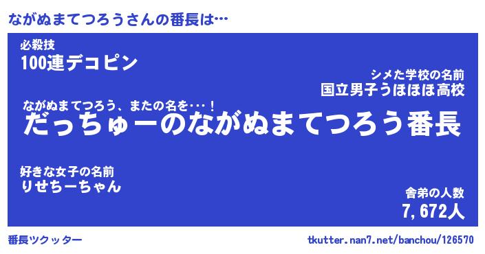 | 伝説のあだ名 | 『伝説のスナイパーながぬまてつろう』 |