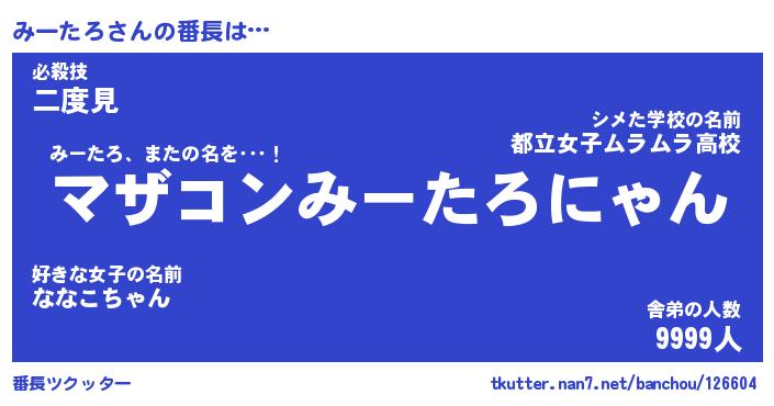 | 意味不明あだ名 | 『ペロリンみーたろ』『永久保存みーたろ』 |