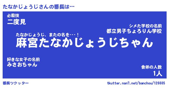 | ポケモン風あだ名 | 『タナチュウ』『タナカダネ』 |
