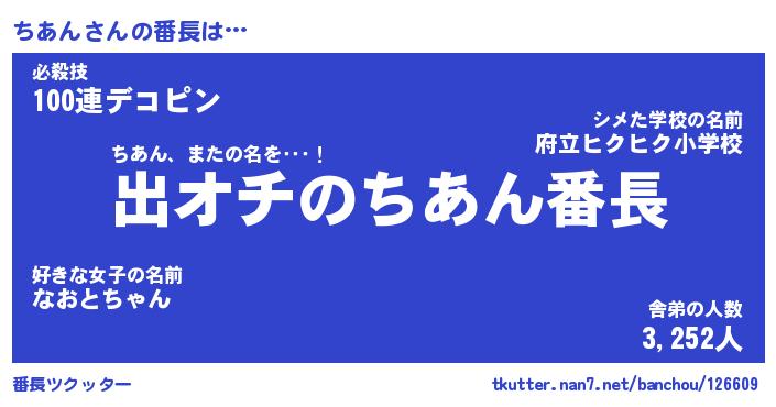| ヘコむあだ名 | 『ちあにー』『つくし』『ちあ太郎』 |