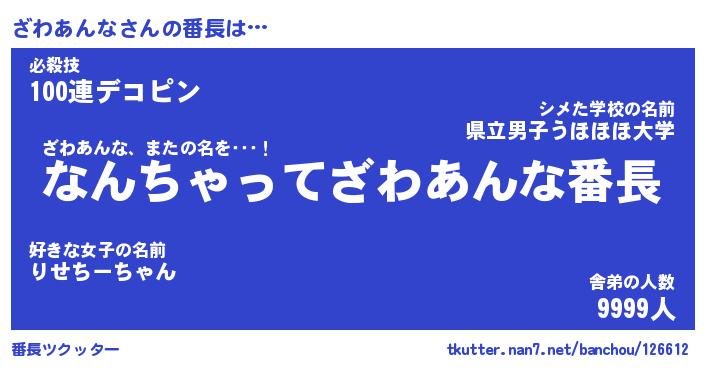 | 伝説のあだ名 | 『伝説のスナイパーざわあんな』 |