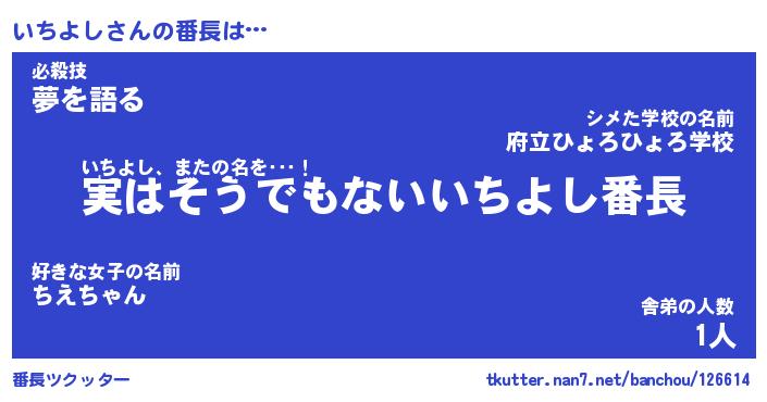 | 意味不明あだ名 | 『ペロリンいちよし』『永久保存いちよし』 |