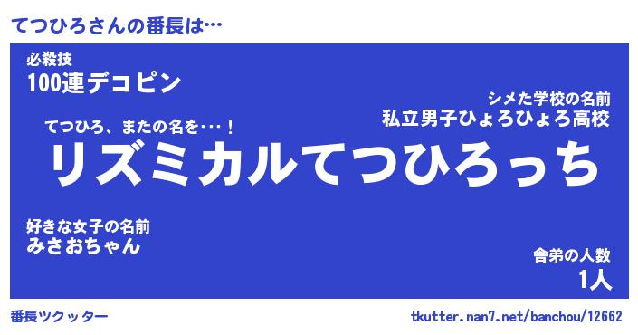 | 伝説のあだ名 | 『伝説のスナイパーてつひろ』 |