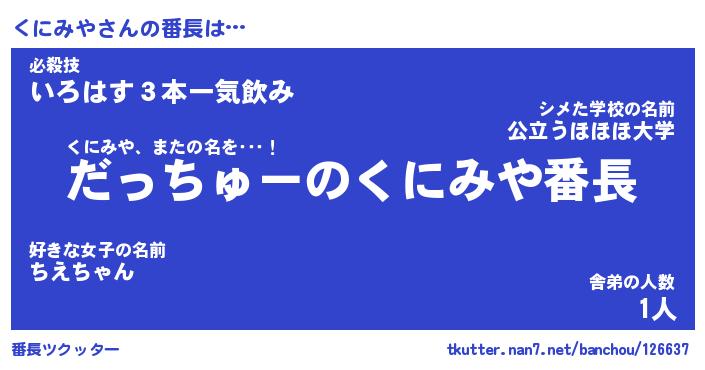 | 意味不明あだ名 | 『ペロリンくにみや』『永久保存くにみや』 |