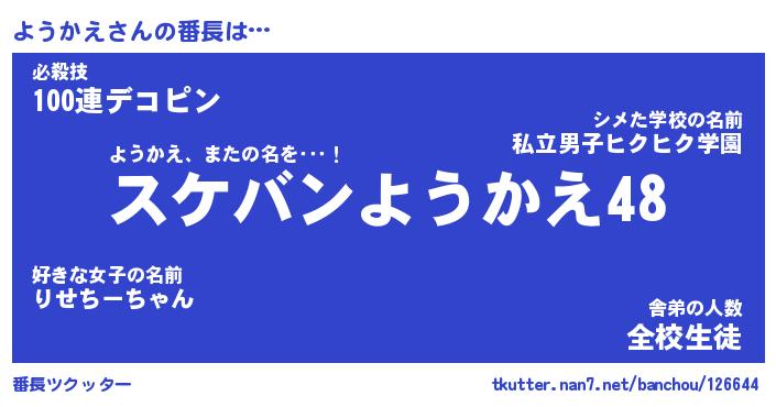 | 肩書あだ名 | 『ようかえ店長』『ようかえ総理大臣』 |