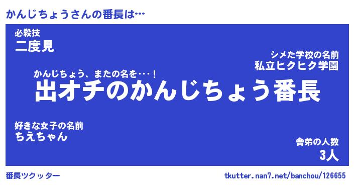 | 男性向けラノベタイトル風あだ名 | 『かんじちょうの憂鬱』 |