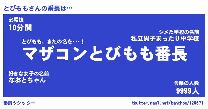 | ヒーロー風カッコイイあだ名 | 『スーパートビモモ』『天弓騎士トビ』 |