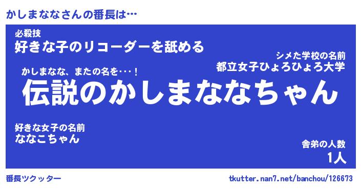 | 恥ずかしいあだ名 | 『プリティーかしまなな』『かしっちょ』 |